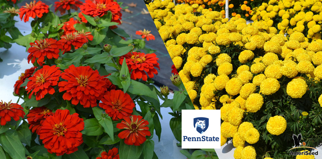 Zinnia Holi (Experimental name ‘Elegance’) and Marigold Big Duck series ranked the best annual flowers of 2019, Penn State flower trials, Penn State University.